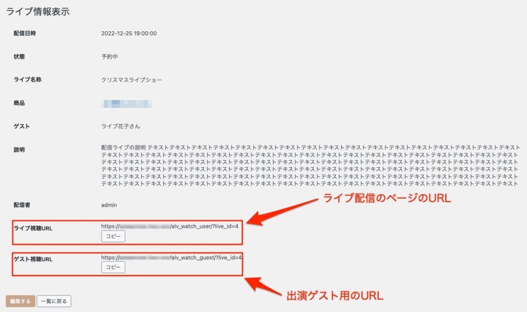 画面左下の【編集する】ボタンをクリックするとライブ情報を編集することができます。