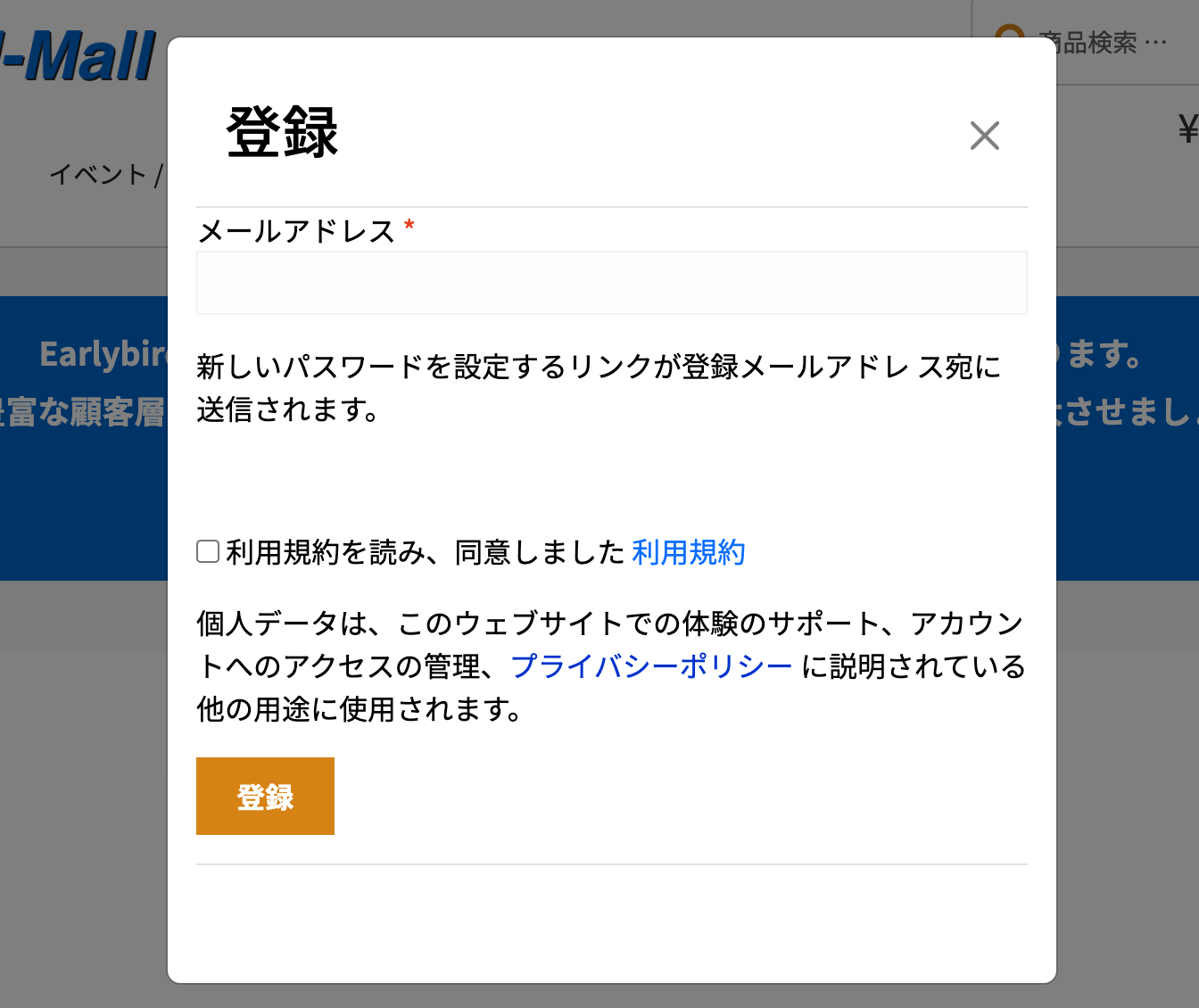 - 【登録】をクリックすると、出店登録ページに遷移します。