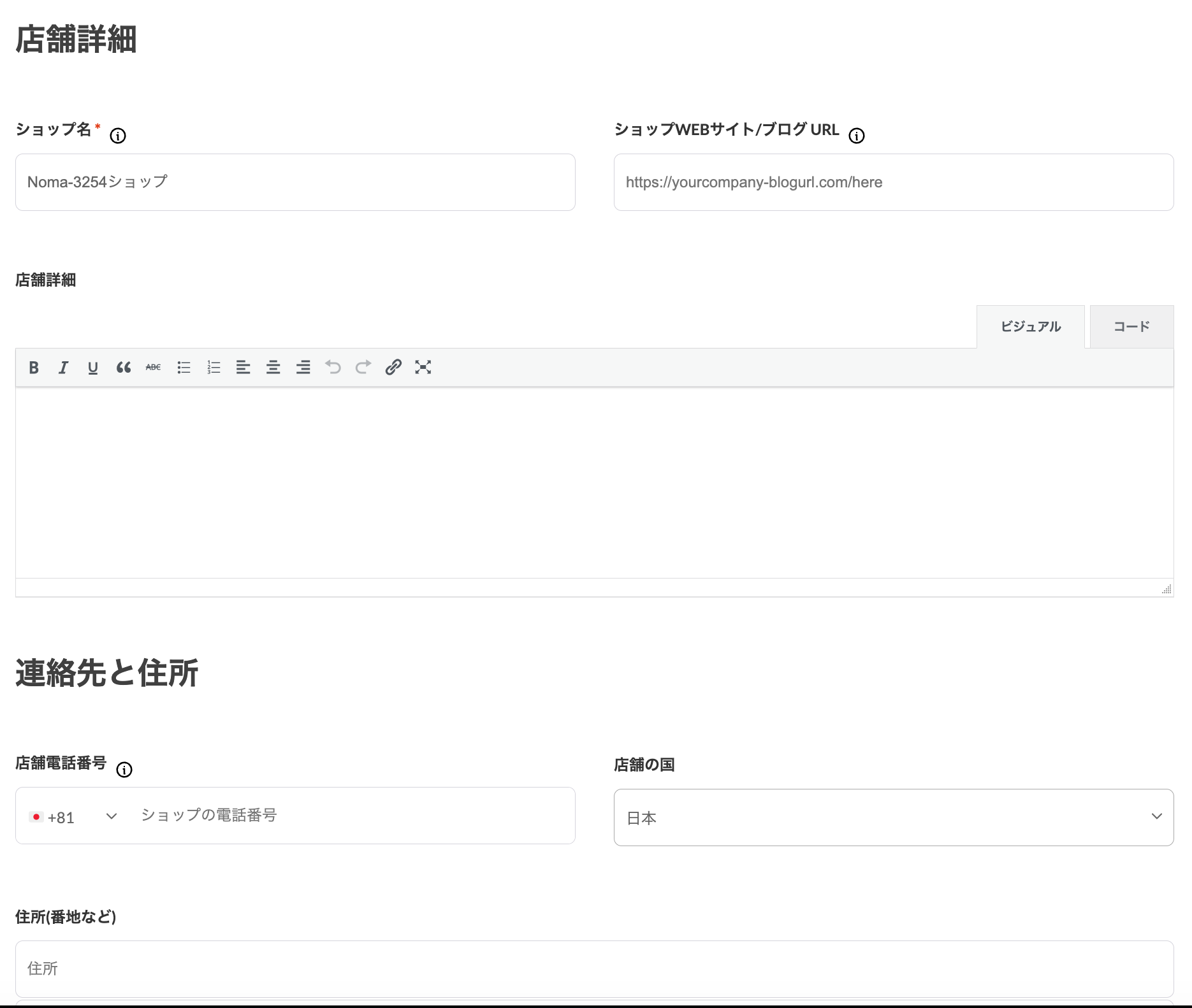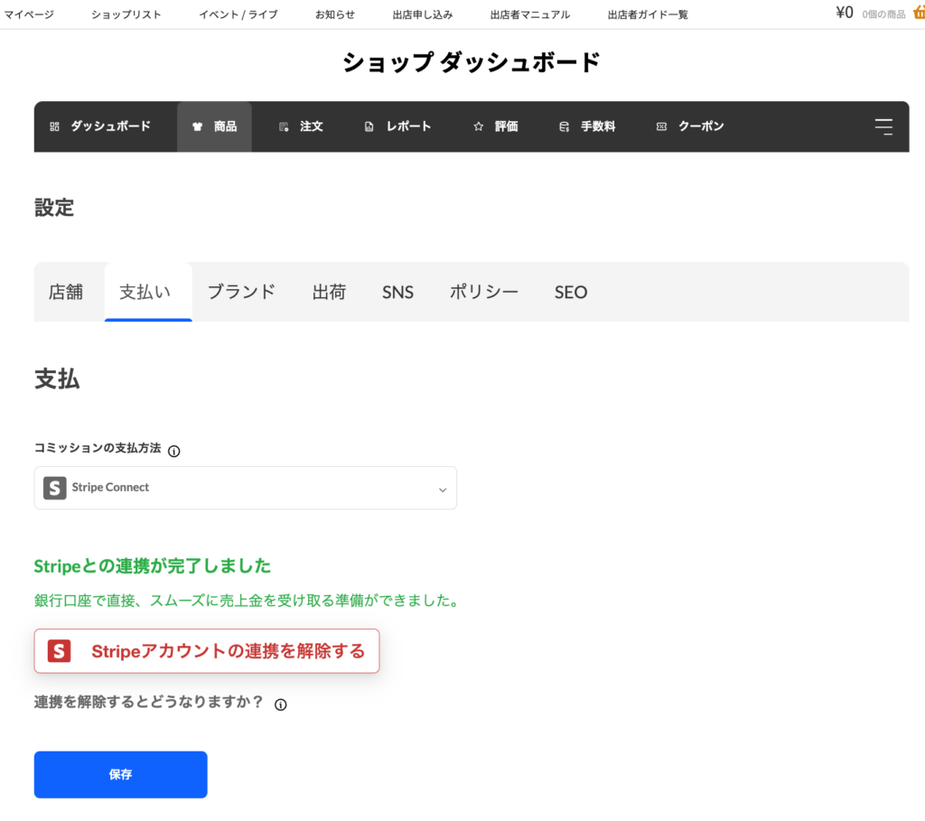 ※この時点では【店舗】タブの内容のみで問題ありません。支払いやブランド等のは出店が承認されてから設定します。