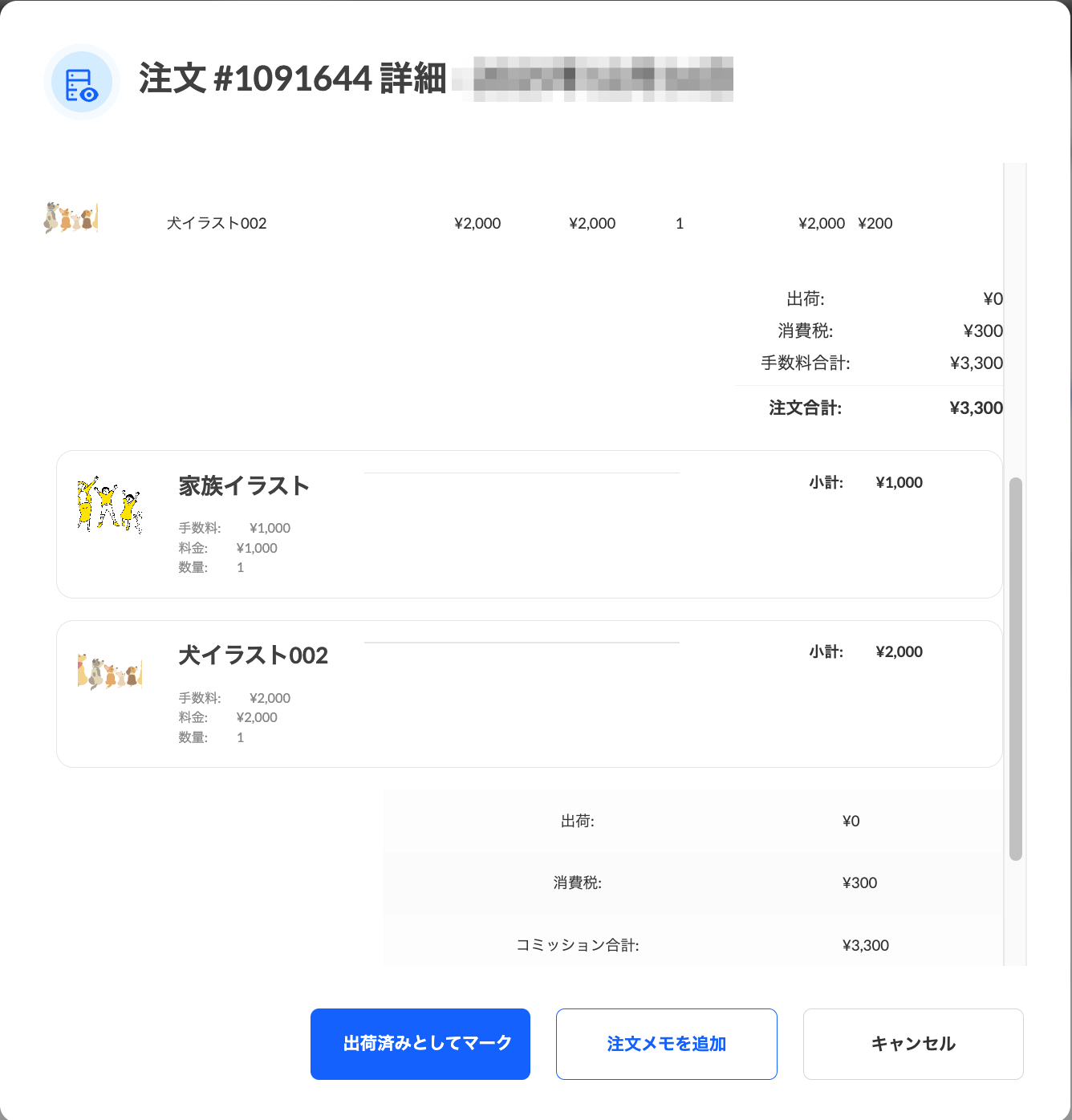 注文一覧のいずれかの注文をクリックすると注文の詳細を確認できます。